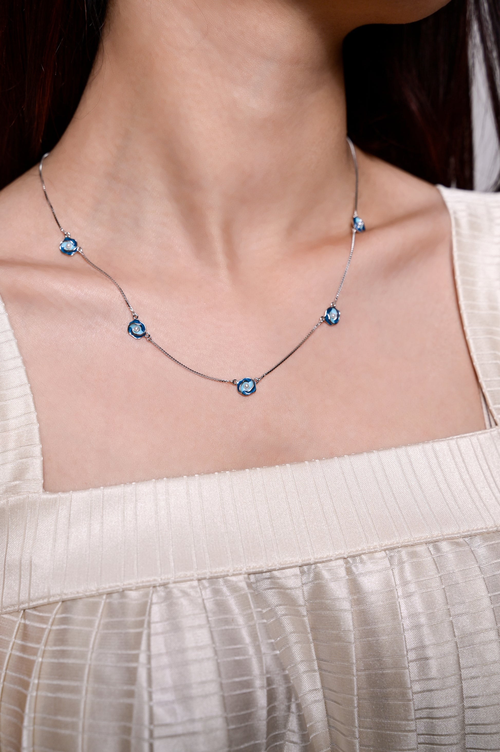 Whether styled with pastels, whites, or evening outfits, the Azure Bloom Necklace brings a gentle splash of colour and sophistication to every occasion.