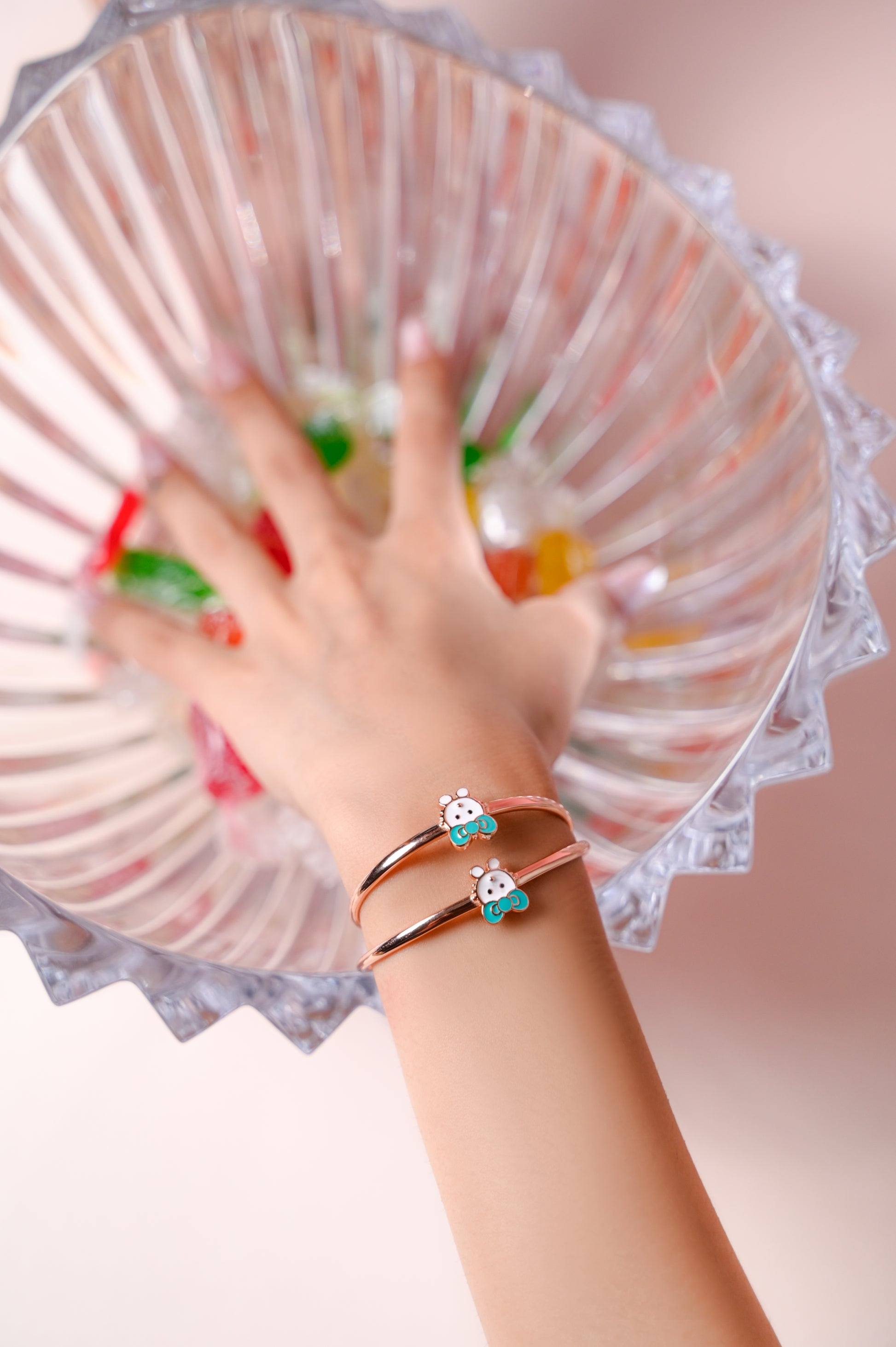 A playful and adorable bracelet designed for young girls. Featuring a cute bear face charm with colorful enamel ears, this bracelet adds a fun and charming touch to everyday outfits. The smooth rose-gold finish makes it premium yet kid-friendly.