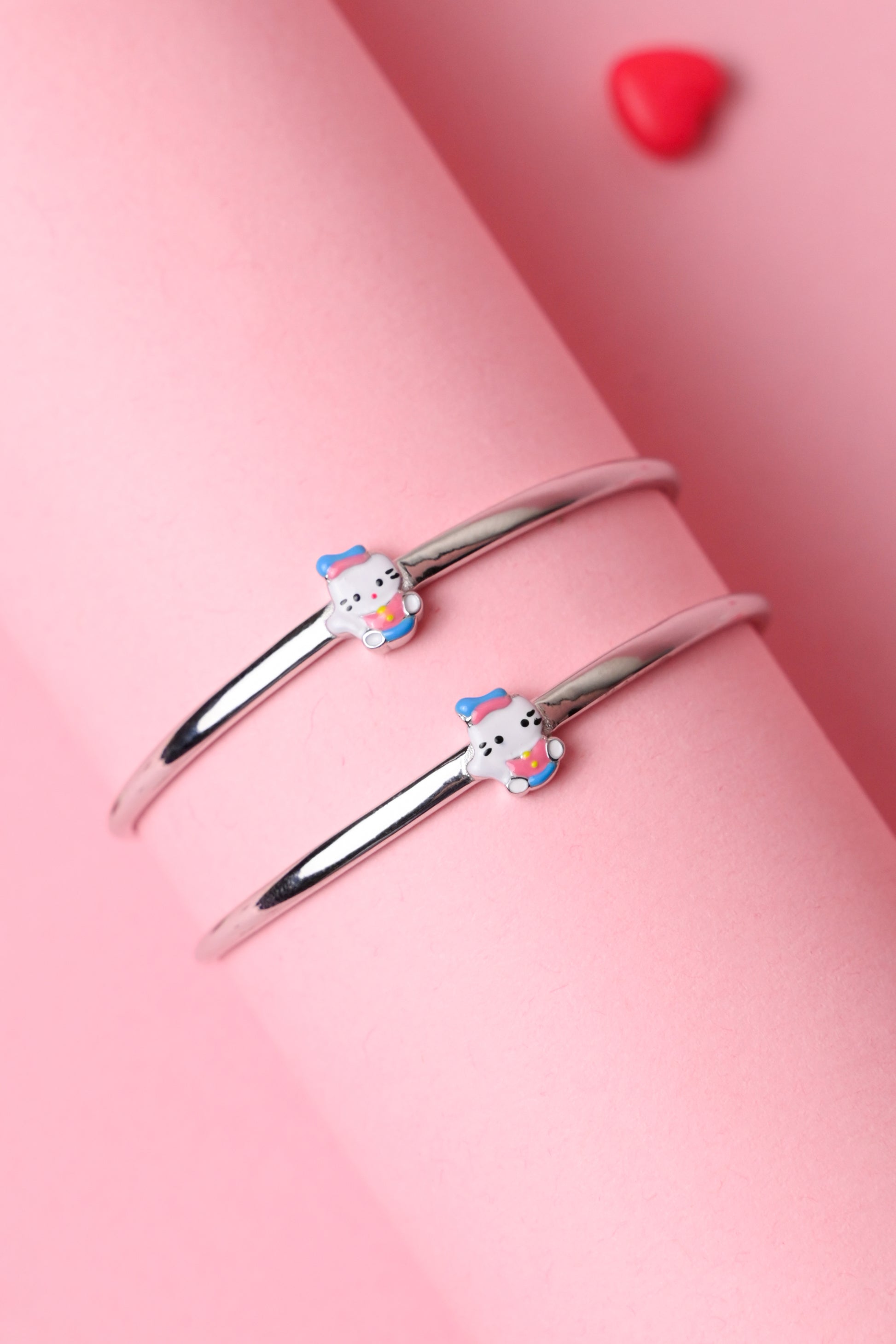 Playful, charming, and irresistibly adorable — the Cute Kitty Enamel Kada is designed to bring a smile to your little one’s everyday style. Featuring a glossy, polished metal band paired with a colourful enamel kitty charm, this kada adds a pop of personality while remaining lightweight and comfortable for all-day wear.