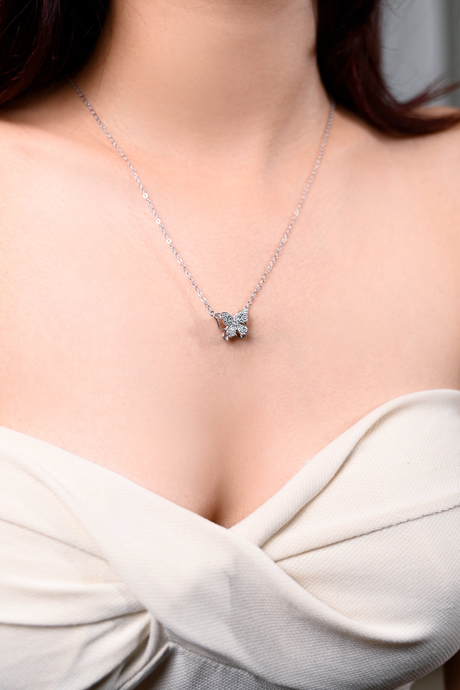 • Dual-layer butterfly pendant with a rotating pavé butterfly