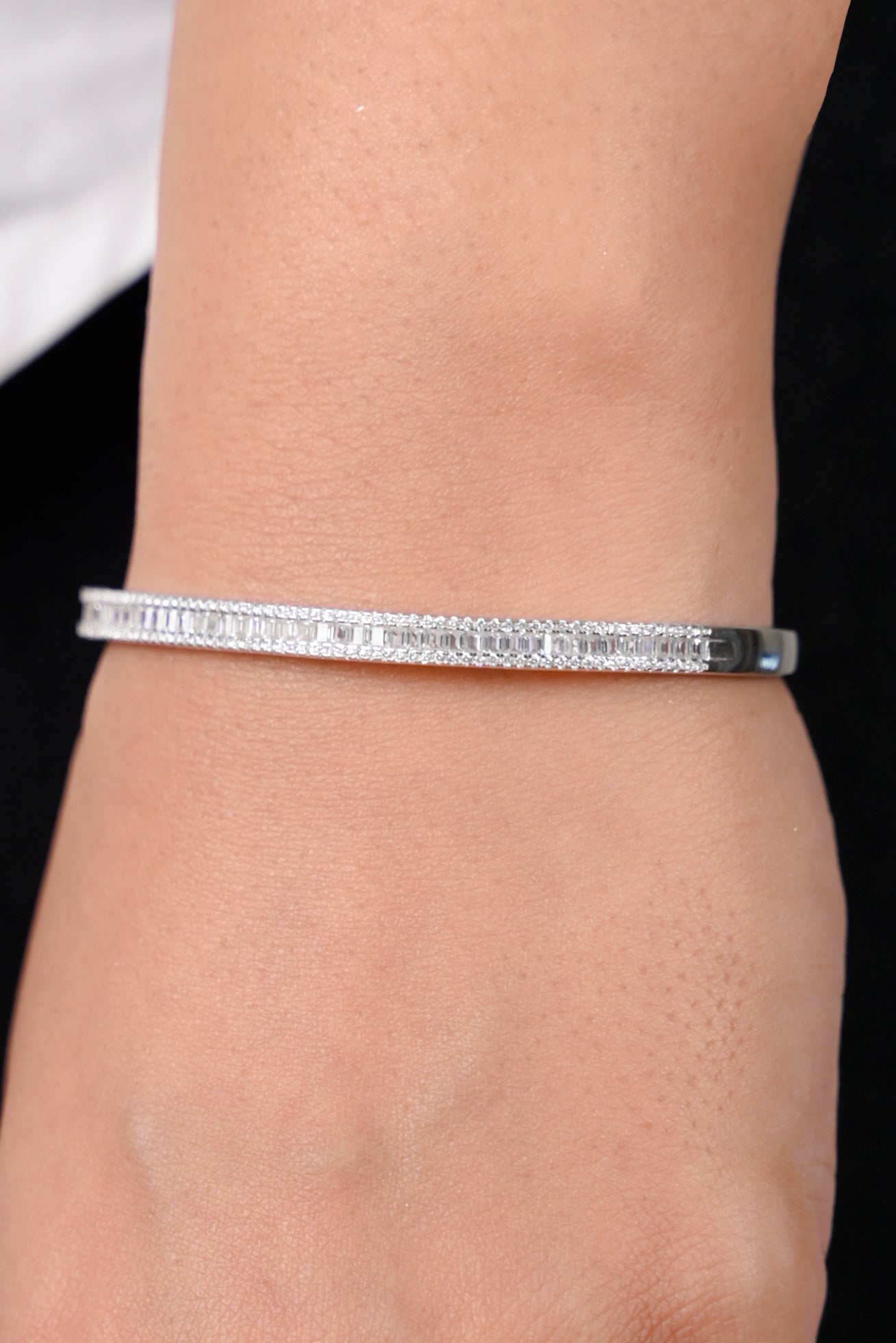 The bangle’s clean geometry and luminous sparkle celebrate quiet elegance, making it a timeless companion for the modern woman who values both simplicity and shine.