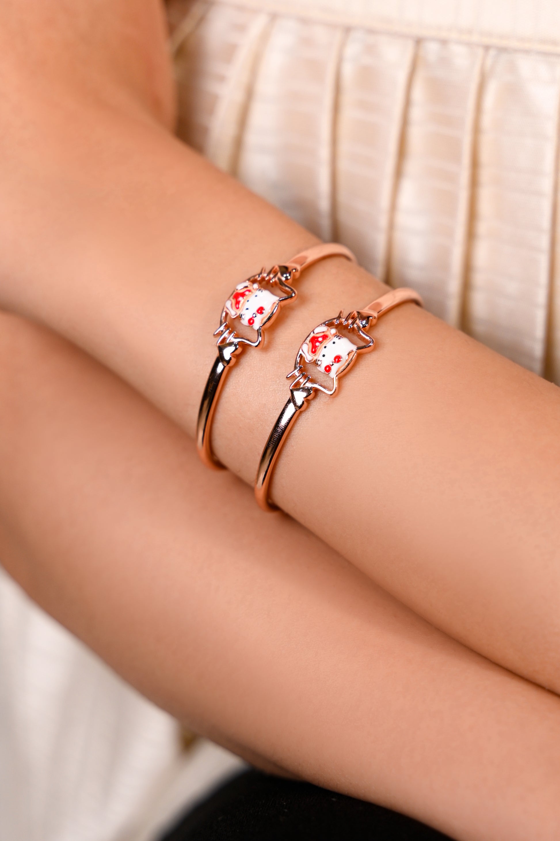 A delightful blend of charm and elegance, the Lucky Kitty Charm Bangle brings a playful spirit to your jewellery collection. Featuring an adorable enamelled kitty motif with sparkling accents, this bangle captures the joy of good fortune and gentle whimsy.